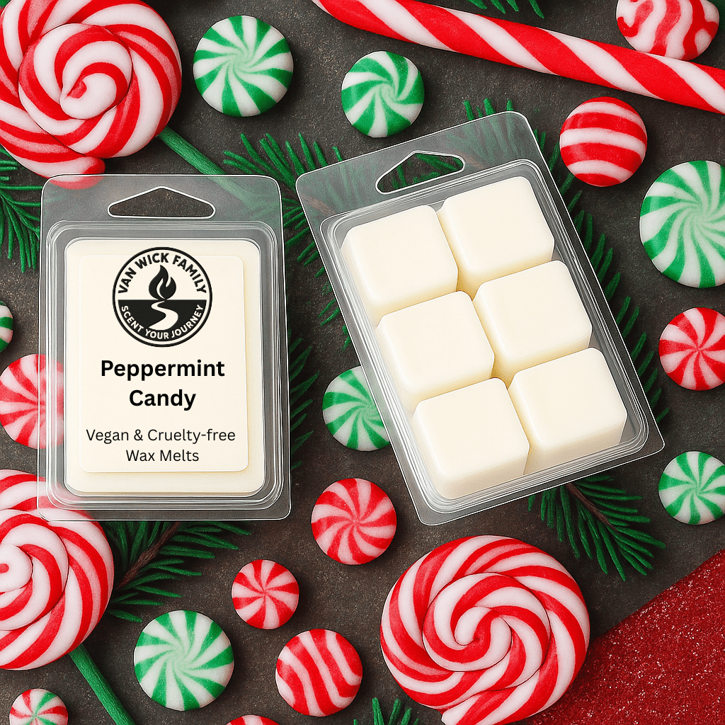 Fresh peppermint and sweet vanilla — the classic festive scent. Hand-poured, vegan, cruelty-free wax melts for a clean, strong throw.